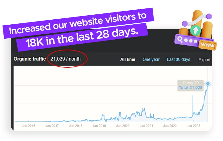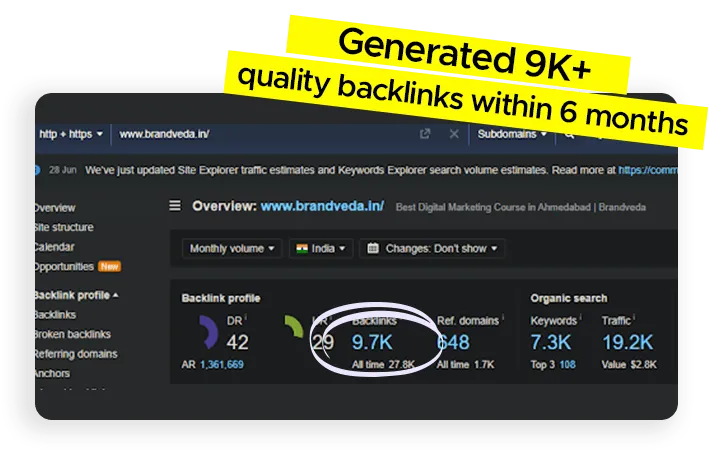 Through strategic outreach and content excellence, we've achieved an impressive 9K+ high-quality backlinks, showcasing our prowess in effective link building within just 6 months.